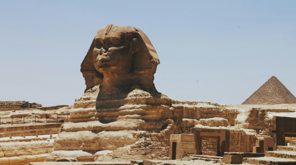 うわぁ…!大きい…! 人間の顔とライオンの体を持つスフィンクス。