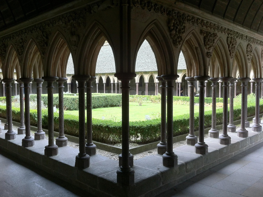 修道院の中は、外の喧騒が嘘のように静かで、荘厳な空気が流れています。 特に「ラ・メルヴェイユ(驚異)」と呼ばれる回廊(中庭を囲む廊下)は必見です。