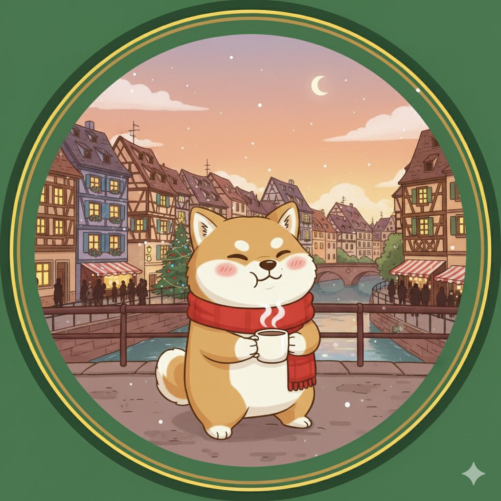 さあ、旅のクライマックスです! ストラスブールで最も美しいイルミネーションの一つ、「黄金の通り(Rue des Orfèvres)」へワープ!