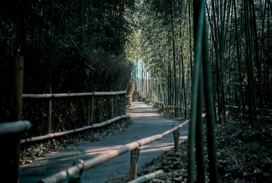 草履で、静かな竹林の小径を歩きます… 見上げてください、このどこまでも続く竹、竹、竹!