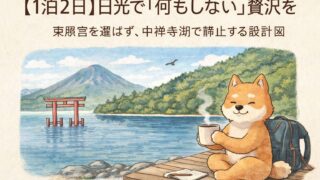1.国内旅行 【1泊2日】日光で「何もしない」贅沢を|東照宮を選ばず、中禅寺湖で静止する設計図 日光観光で疲れてしまう原因は「207段の石段」と「渋滞」にあります。本記事では、あえて名所観光を放棄し、標高1,269mの中禅寺湖で「静止」することに特化した1泊2日の設計図を公開。スペーシアXやタクシーを活用した「防御的投資」により、移動を回復に変え、翌日に100%の余力を残すための具体的な実戦スケジュールを提案します。 2026.02.13 1.国内旅行1.静止型まどろみ旅2.快適型まどろみ旅3.旅の型①まどろみ旅