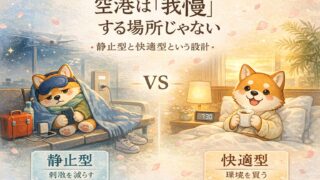 ②旅の知識 空港は「我慢」する場所じゃない|静止型と快適型という設計 空港での時間を「我慢」から「設計」へ。静止型(刺激を減らす)と快適型(環境を買う)、2つの過ごし方を徹底比較。あなたに合う選択肢がわかる。 2026.02.20 ②旅の知識