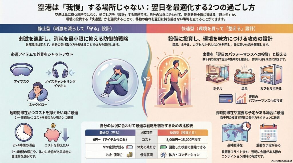 この記事では、 空港での過ごし方を二つの思想で整理します。